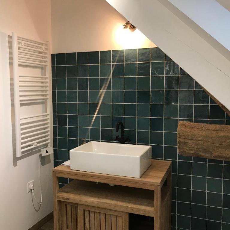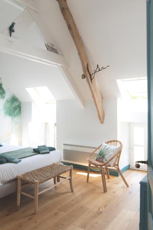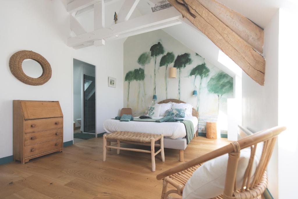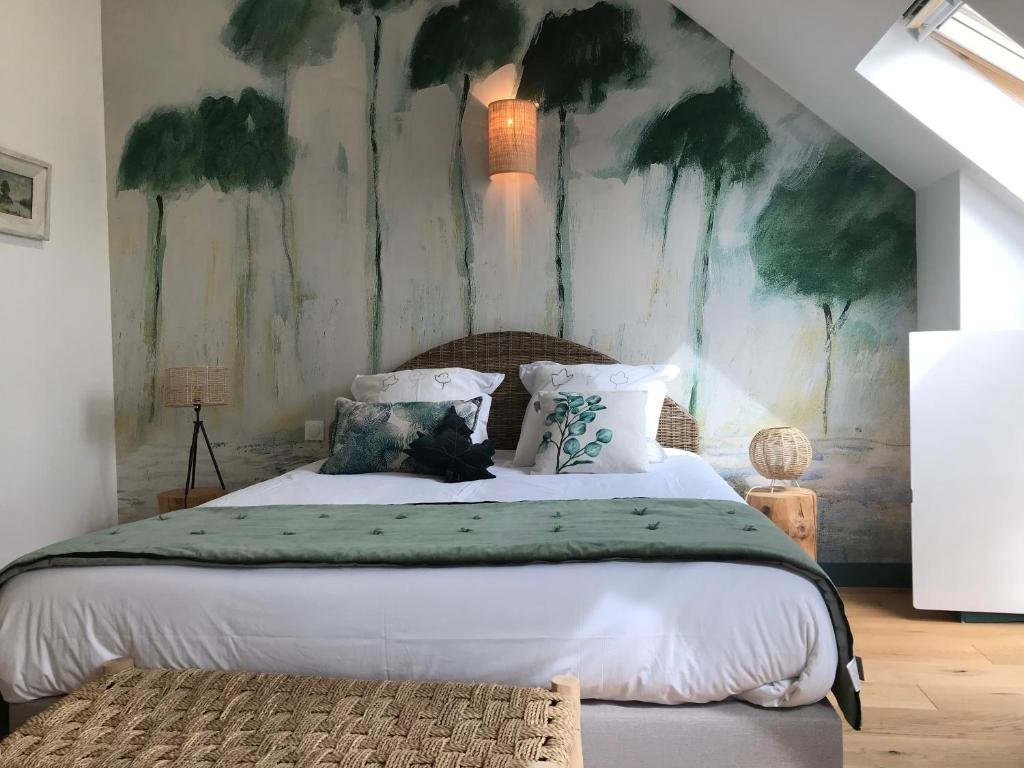 La chambre Campagne aux tons verts, très lumineuse, est au premier étage, équipée d’un lit en 160/200, d’un petit bureau, d’une commode et d’une penderie. Sa salle de bain dispose d’une douche et de wc privés. On peut apprécier de son lit une jolie vue sur le jardin.